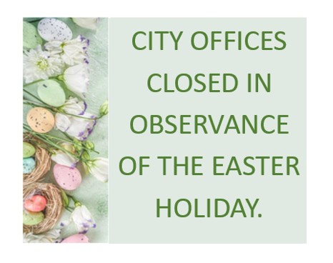 All City Offices will be closed Friday, April 3rd in observance of the Easter holiday.